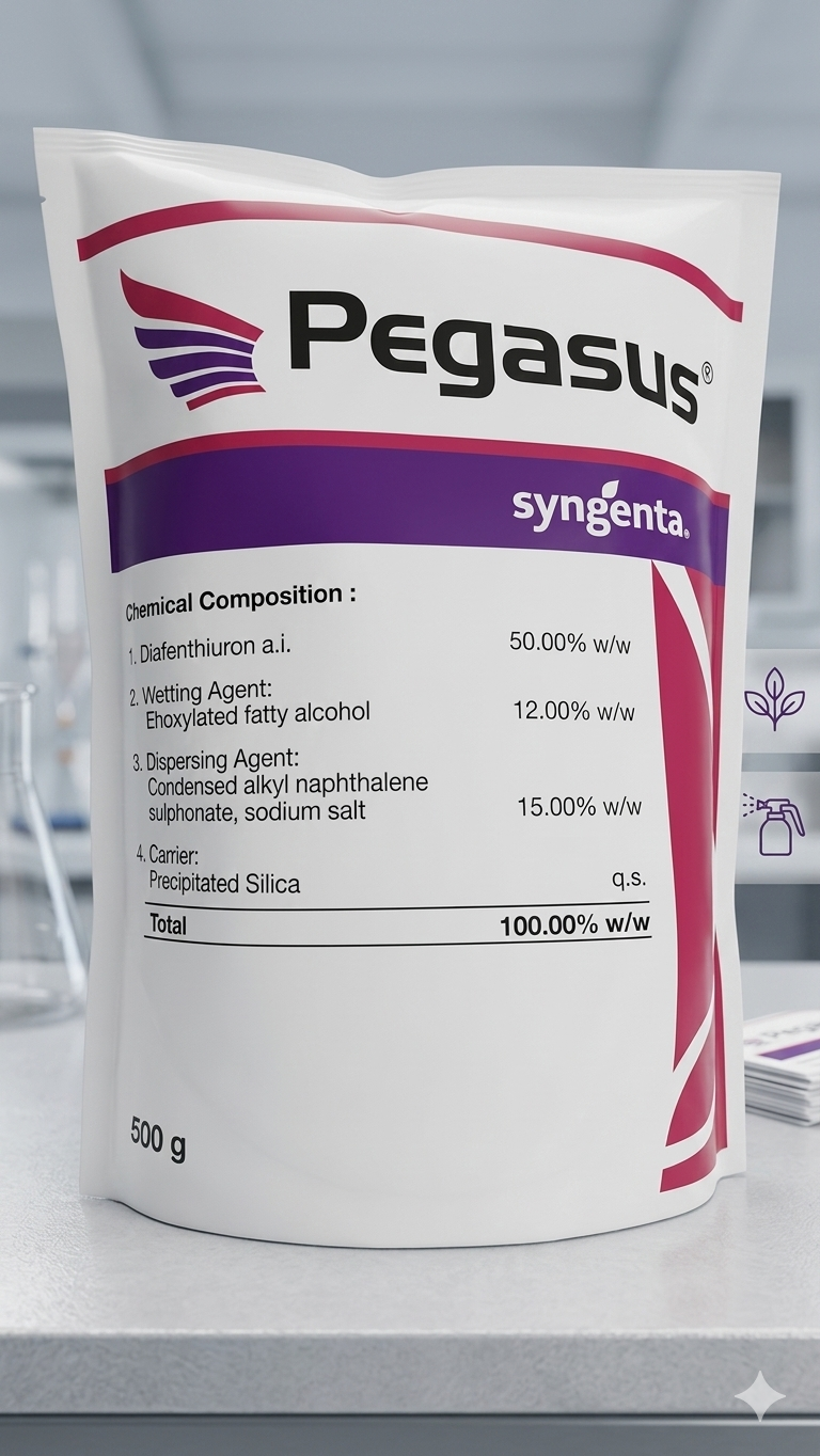 - Pegasus Insecticide contains Diafenthiuron, effective against a variety of pests.